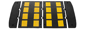 The rubber speed bump, also known as sleeping policeman, is a great traffic device commonly found where vehicle speeds are statutorily enforced to be low. Yellow-and-black color enables this traffic safety device to be excellently catchy in the day. In addition, it can reflect light at night to draw driver’s attention and thereby improve safety.